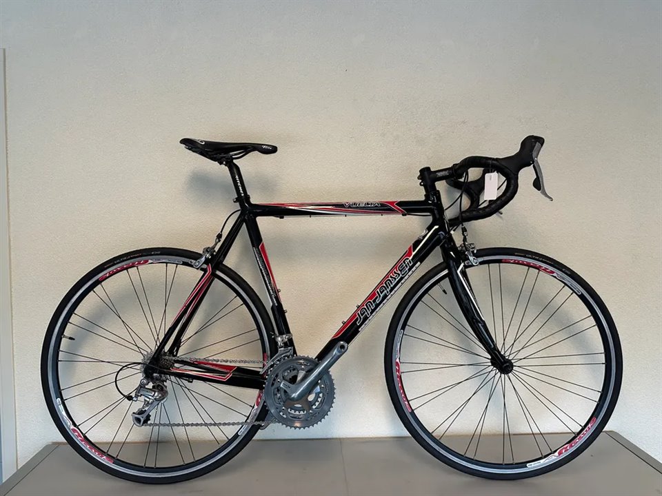 Een Jan Janssen Vuelta racefiets van alluminium met carbon voorvoork.